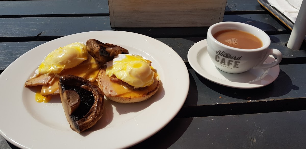 Not to be outdone by its drinks, the café also serves up a selection of savory dishes perfect for any time of day. The Eggs Benedict is a popular choice, offering a rich and satisfying breakfast or brunch. If you're looking for something a little more substantial, Scampi and Chips or Ham, Eggs, and Chips will surely hit the mark. For those seeking healthier options, The Bluebird Cafe also provides plenty of lighter fare, including small plates and vegan-friendly dishes.